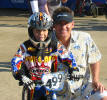 Before you get up on the starting gate, it is suggested that first you closely watch the riders go around the track. Pay attention to their body motion over jumps (using arms and legs as shock absorbers) and note where riders are pedaling and when they are coasting. Take it slow on your first few laps. Remember, you are brand new to this and those fast, expert racers started off just like you. Take time to learn the track - know which obstacles are coming up and how to take it smoothly. Often, the difference in the beginner class is who is smoothest around the course rather than quickest